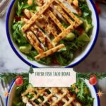 This vibrant Fish Taco Bowl with Green Apple and Guacamole is a fresh and healthy twist on traditional tacos. Featuring tender grilled tilapia fillets served over peppery baby arugula, topped with a zesty green apple guacamole and crispy baked tortilla strips, this dish offers a delightful combination of flavors and textures perfect for a light and satisfying meal.