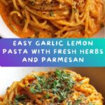 A vibrant and flavorful pasta dish featuring al dente pasta tossed in a fragrant garlic and olive oil sauce, enhanced with fresh herbs, lemon zest, and a touch of Parmesan cheese for a delightful burst of taste in every bite.