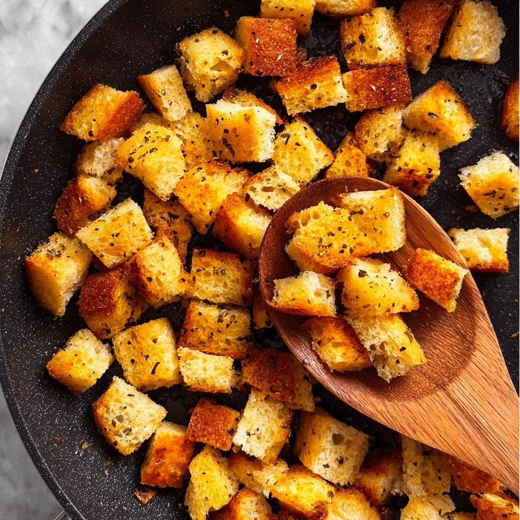 Keep cooking and stirring the bread cubes until they turn a gorgeous golden brown and are fully crisped on all sides. This usually takes around 10 to 12 minutes. Be patient — this step ensures each crouton is irresistibly crunchy inside and out.