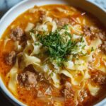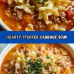 Golumpki Soup is a comforting Polish-inspired soup that captures the flavors of traditional stuffed cabbage rolls in a hearty, easy-to-make bowl. This rich soup combines ground beef and pork, tender cabbage, and rice simmered in a savory tomato and beef broth seasoned with thyme, paprika, and Worcestershire sauce. Perfect for a cozy family dinner, it’s filling and flavorful, garnished with fresh parsley for a vibrant finish.
