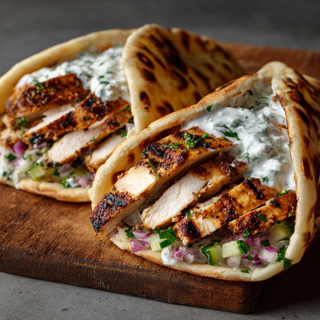 Warm the chicken gently in a skillet or microwave, and always refresh the pita bread by heating it briefly in a pan or oven. Serve with freshly scooped tzatziki to retain its cool, creamy texture.