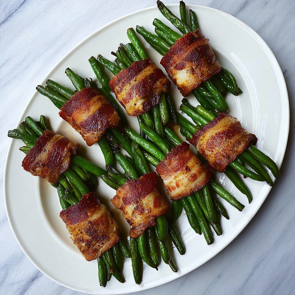 These Green Bean Bundles Wrapped in Bacon offer a deliciously savory and slightly sweet side dish perfect for any meal. Fresh green beans are blanched, bundled into bite-sized portions, wrapped in partially cooked bacon, and roasted to crispy perfection with a buttery, garlicky seasoning and a touch of brown sugar for a flavorful glaze.