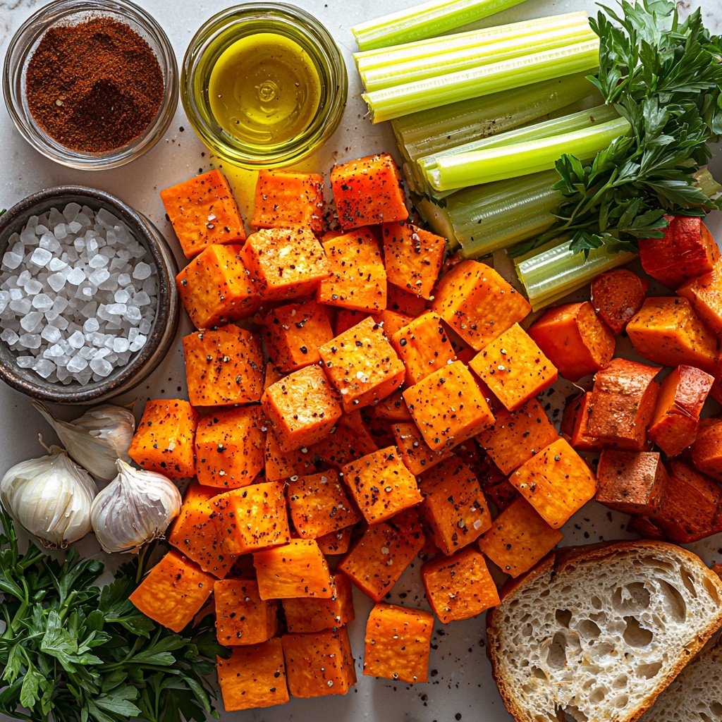 - Carrots (2 cups, chopped): They add a subtle sweetness and vibrant orange color to complement the sweet potatoes.