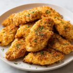 Bake the chicken for about 18 to 20 minutes, or until the coating is golden and crunchy. For perfectly cooked chicken, check that the internal temperature reaches 165°F (74°C) using a meat thermometer. The result will be juicy inside and irresistibly crispy outside.