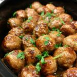 - Serve and Garnish: Once cooked, serve the meatballs directly from the crockpot. If your crockpot has a warm setting, use it to keep the meatballs warm during your gathering. Garnish with chopped parsley if desired for a fresh touch.