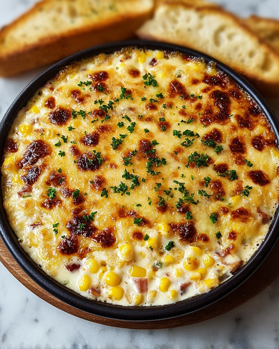 This Hot Corn Dip with Cream Cheese, Sour Cream, and Melty Colby Jack Cheese Recipe is a total game-changer for any gathering or cozy night in. Its creamy, cheesy, and slightly spicy flavors come together in a dish that’s as easy to make as it is impossible to resist. Give it a try and watch everyone come back for seconds and thirds — it’s that good!