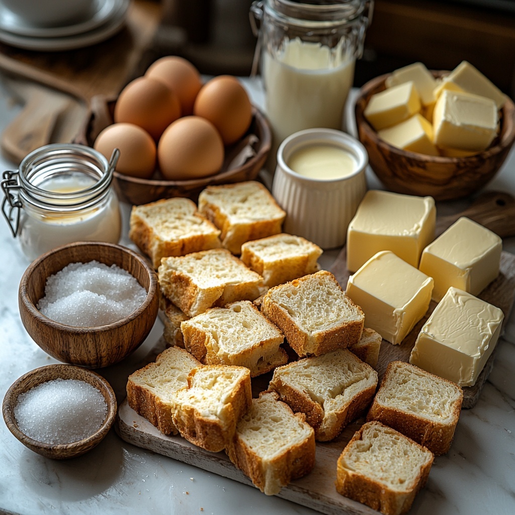 - 8 slices day-old brioche: Thick-cut brioche is essential because it soaks up the custard perfectly without falling apart.