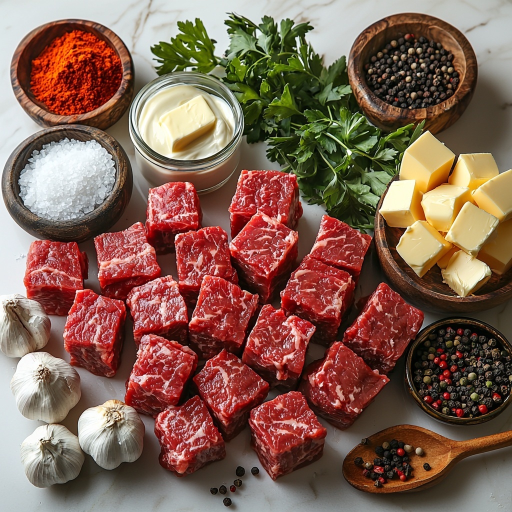 This recipe calls for a handful of straightforward yet essential ingredients, each playing its part in creating the rich flavors and satisfying textures that make the dish so memorable. From juicy steak to creamy cheeses and fragrant garlic, every item has a purpose that elevates the final plate.