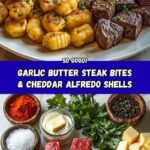 Juicy Garlic Butter Steak Bites and Loaded Cheddar Alfredo Shells Recipe