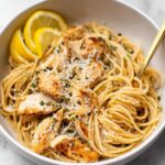 For a dinner party or special occasion, serve the pasta in individual bowls garnished with lemon wedges and a small sprig of parsley. You can also plate the chicken slices atop the pasta for a restaurant-style look that impresses without extra effort.