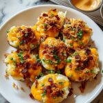 Loaded Smashed Potatoes are a deliciously crispy and cheesy side dish featuring tender baby potatoes smashed and baked to golden perfection, topped with melted cheddar cheese, crispy bacon, sour cream, and fresh chives. Perfect for parties or a flavorful addition to any meal.
