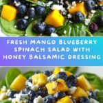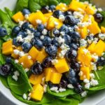 A refreshing and vibrant Mango, Blueberry, and Spinach Salad combining sweet, tart, and savory flavors perfect for a light meal or side dish. This easy no-cook salad features fresh spinach, juicy mango, sweet blueberries, and optional additions like red onion, feta cheese, and nuts, all brought together by a tangy honey-balsamic dressing.