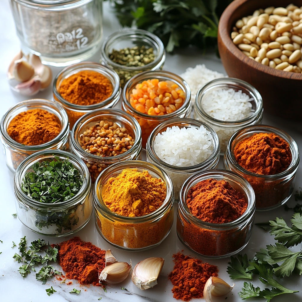 Gather a handful of everyday ingredients that together create this delicious Mediterranean Yellow Rice Recipe. Each plays a vital role, from adding warmth and aroma to giving the rice its beautiful golden glow and uplifting freshness.