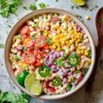 This Mexican Macaroni Salad Fiesta is a vibrant and creamy side dish perfect for gatherings and everyday meals. Featuring tender elbow macaroni tossed in a zesty dressing made from mayonnaise, sour cream, and lime juice, it’s enhanced with chili powder for a subtle kick. The addition of sweet corn, crunchy red bell pepper, and fresh cilantro adds refreshing texture and flavor, making it an irresistibly festive salad.