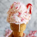 - Serve and Enjoy: Scoop and serve the peppermint ice cream on its own or paired with Nana’s Famous Fudge Brownies. Optionally sprinkle extra crushed candy canes on top for added festivity and crunch.