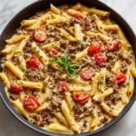 This One Pot Creamy Tomato Beef Pasta is a comforting and easy-to-make dinner that combines tender ground beef, hearty pasta, and a rich, creamy tomato sauce all cooked together in one pot. Perfect for busy weeknights, this dish delivers bold Italian flavors with minimal cleanup.