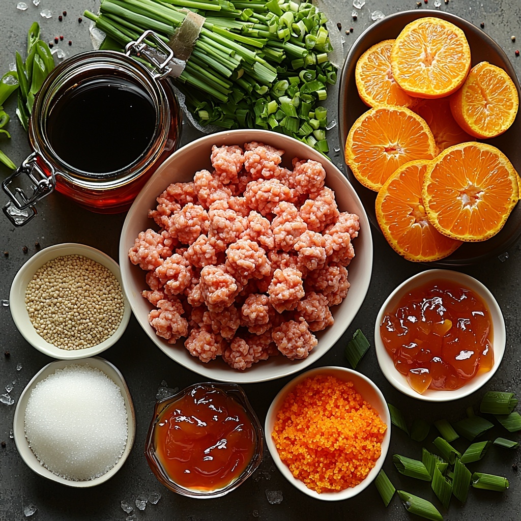 The ingredients for this dish are wonderfully straightforward, each playing a crucial role in creating the ultimate flavor profile. From the ground chicken’s tender texture to the bright and sweet notes brought by orange and marmalade, every component works together to create a deliciously balanced meal.