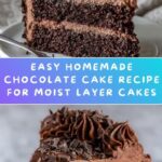 This Perfect Homemade Chocolate Cake Recipe freezes beautifully. Wrap individual cake layers or the whole cake tightly in plastic wrap and then aluminum foil to prevent freezer burn. It can be frozen for up to 3 months. When ready, thaw in the refrigerator overnight for best texture.