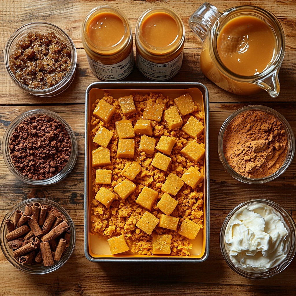 These simple yet essential ingredients come together beautifully to create the perfect balance of flavors and textures in this cake. Each one plays a crucial role, from the fluffy yellow cake base to the warm spices and the sweet finish that makes this dish truly dreamy.