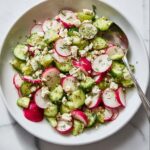 A refreshing and vibrant Radish Cucumber Salad featuring crisp cucumber and radishes tossed with creamy feta cheese and a zesty lemon vinaigrette, enhanced with fresh dill. Perfect as a light side dish or a healthy snack.