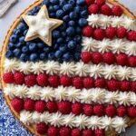 This festive Red, White, and Blueberry Flag Pizza is a delicious and visually stunning dessert perfect for patriotic celebrations. A buttery sugar cookie crust forms the base, topped with a creamy, sweetened cream cheese mixture blended with fluffy whipped topping, and adorned with fresh raspberries and blueberries arranged to resemble the American flag. Easy to make and sure to impress, this no-bake topping pizza combines fruity freshness with creamy sweetness in each bite.