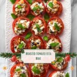 Serve the stuffed tomatoes on a rustic wooden board for a charming, casual appetizer spread. Or scoop the filling onto toasted baguette slices for an easy and elegant bruschetta twist. Turning this Roasted Tomatoes with Feta, Olives, and Pine Nuts Recipe into little bites makes it ideal for parties and gatherings.