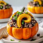 Carefully spoon the luscious mushroom and chard mixture into each hollowed pumpkin, packing it tightly to ensure every bite is flavorful. Sprinkle the remaining cheese over the tops for a golden, melty crust. Bake in the preheated oven for 30-35 minutes if you’re using mini pumpkins, or 35-40 minutes for acorn squash, until the pumpkin flesh is tender and a knife pierces through easily. This baking time melds all the flavors beautifully while softening the squash to a perfect, creamy texture.