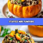 These stuffed mini pumpkins make a perfect centerpiece, but they also shine alongside a crisp, light salad dressed with lemon vinaigrette or a warm, comforting grain like wild rice or quinoa. Roasted root vegetables or a simple crusty bread would round out the meal beautifully, offering contrasting textures and complementary flavors.