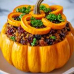- Serve: Place the tops on the baked pumpkins or squash for a charming presentation. Serve warm and enjoy this hearty, flavorful dish.