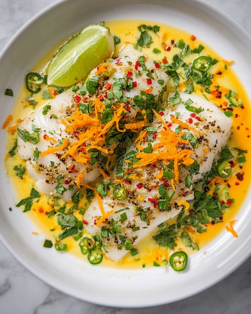 - Serve with Sauce and Garnish: Ladle the remaining coconut milk sauce over the fish, then garnish with chopped green onions and fresh cilantro or basil for a fresh burst of flavor.