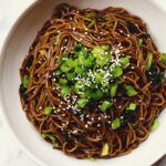 - Garnish: Transfer the noodles to a serving dish and garnish with chopped green onions and toasted sesame seeds for added flavor and presentation.