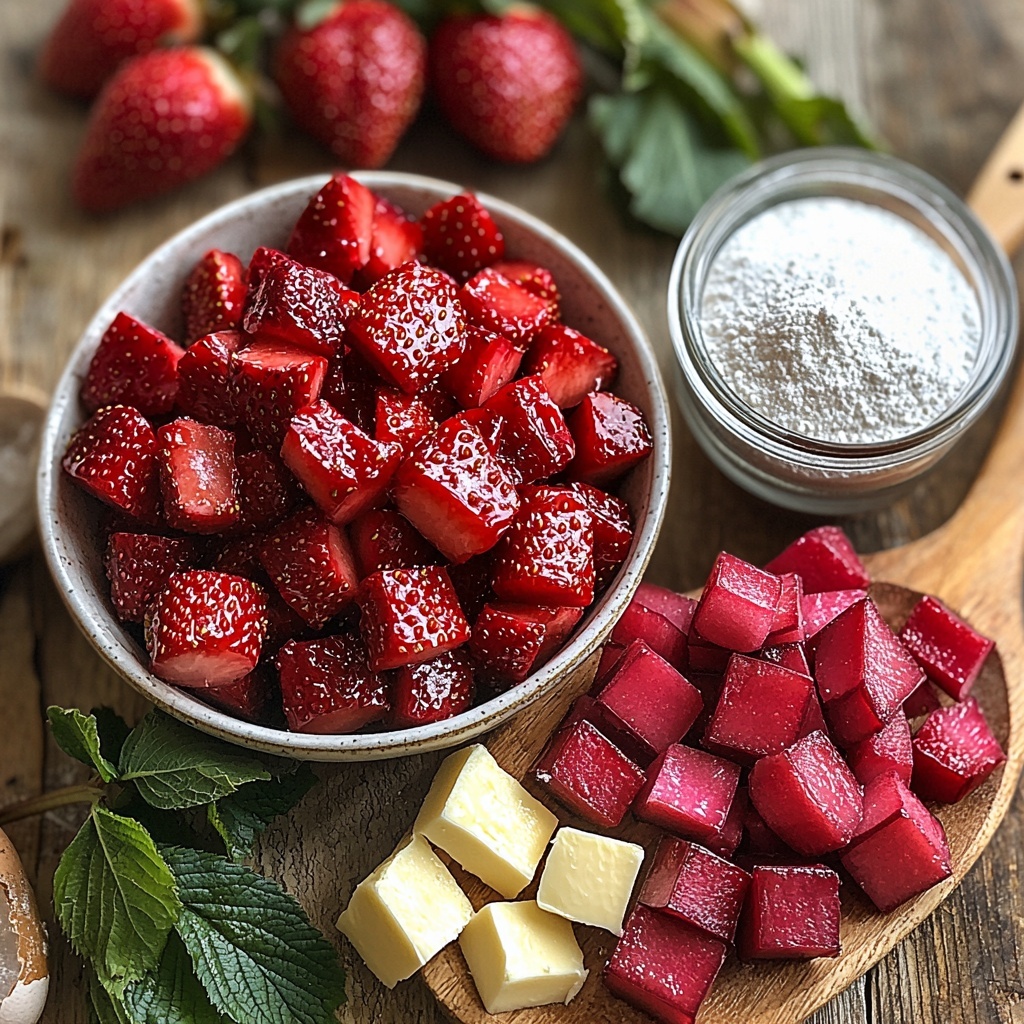 Gathering just a handful of simple, fresh ingredients, this Strawberry Rhubarb Bars Recipe is accessible yet incredibly flavorful. Each item plays a special role, from the freshness of the fruit to the buttery texture of the crust, ensuring every bite is pure delight.