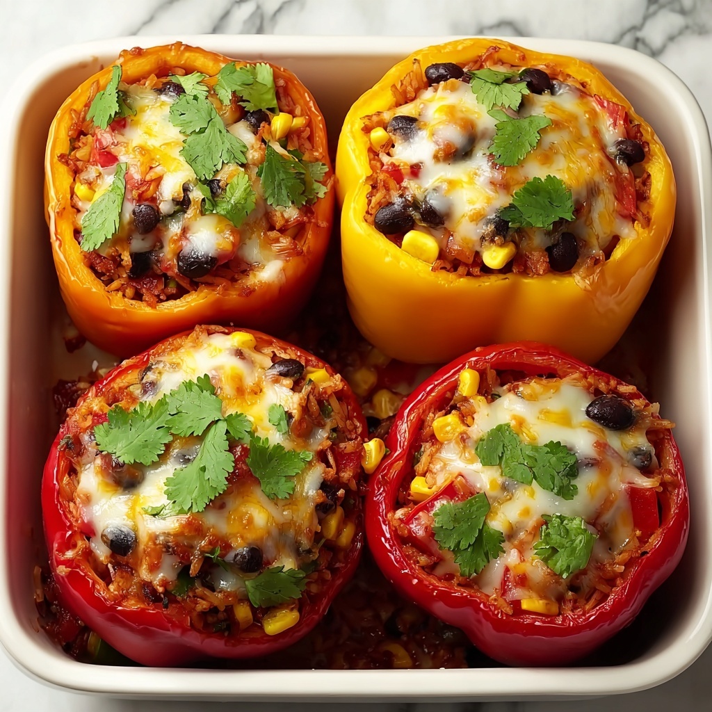 Finish by garnishing your beautiful stuffed peppers with freshly chopped cilantro and serve alongside lime wedges. The fresh cilantro adds herbaceous brightness, while the lime’s acidity offers a zippy contrast that enhances the entire dish.