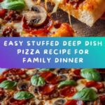 Stuffed Deep Dish Pizza Pie Recipe pairs wonderfully with crisp green salads or a light Caesar salad to brighten up the meal. Garlic breadsticks or a bowl of roasted vegetables can also complement the heavy, cheesy main dish perfectly without overwhelming your palate.