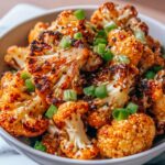 This Sweet and Spicy Baked Cauliflower recipe features tender cauliflower florets coated in a flavorful blend of honey, garlic, soy sauce, and sriracha, then baked to perfection. Garnished with green onions and sesame seeds, it’s a delicious plant-based dish that balances sweet and spicy flavors, perfect as a snack or side dish.