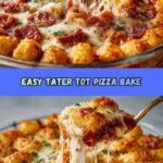 This Tater Tot Pizza Casserole is a delicious and comforting weeknight dinner that combines the savory flavors of ground beef, pizza sauce, and melted cheeses with crispy tater tots. Easy to prepare and perfect for family meals, it brings all the fun of pizza into a hearty casserole dish, topped with pepperoni and fragrant herbs.