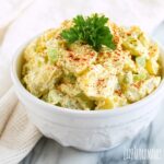 While potato salad isn’t ideal for freezing due to the mayonnaise and vegetable textures, if you must freeze it, avoid adding the eggs and garnish beforehand. Freeze the salad in a sealed container and thaw slowly in the fridge, then add fresh eggs and paprika after thawing.