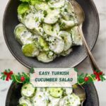 This Turkish Cucumber Salad with Yogurt, Mint, and Dill Recipe is best enjoyed fresh. The cucumbers stay crisp, the herbs retain their vibrant green color, and the garlic brings just the right touch of bite — all creating a perfectly balanced flavor experience right from the first scoop.