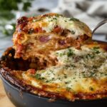 Bake your assembled masterpiece at 350°F (180°C) for 30 minutes or until the top is beautifully golden and bubbling. Once out of the oven, it’s important to let it rest for 10 minutes. This pause allows the layers to set, making it easier to slice without losing all that gorgeous structure, and gives you just enough time to imagine that first bite.