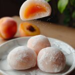 A soft and chewy Whole Peach Mochi recipe featuring a delicate glutinous rice flour dough wrapped around a delightful peach and creamy filling. This Japanese dessert is naturally gluten-free and can be customized with fruity variations like mango or strawberry.