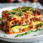 This Zucchini Lasagna is a low-carb, flavorful twist on the classic Italian favorite, substituting traditional pasta with thinly sliced zucchinis for a fresh, lighter meal. Perfectly layered with a hearty ground beef and tomato sauce, creamy ricotta, and melted mozzarella and Parmesan cheeses, this dish offers a deliciously satisfying dinner that’s both comforting and nutritious.
